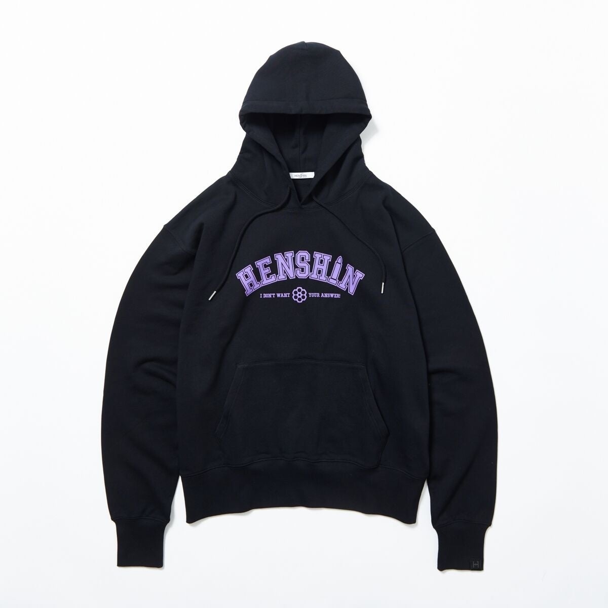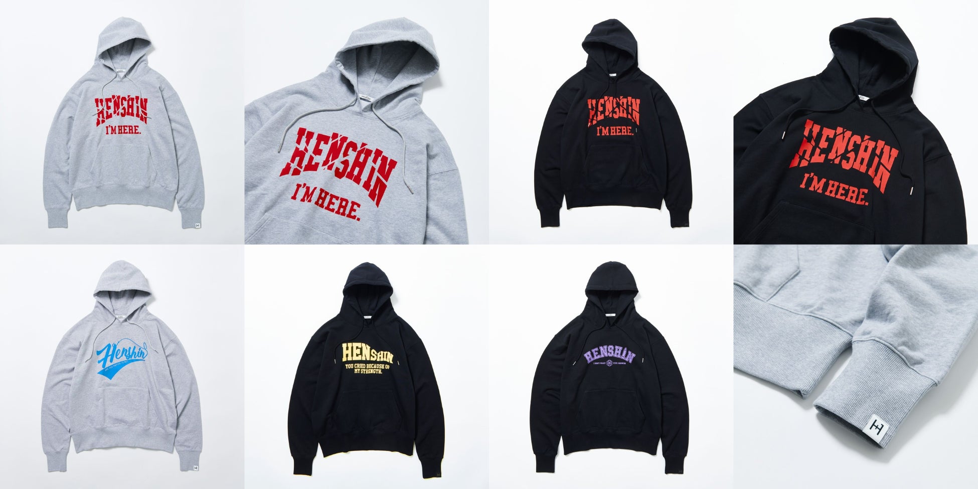 トレンドのビッグサイズのパーカーをベースに、カレッジ風にデザインした「HENSHIN」のロゴ。デザインされた「HENSHIN」のロゴはそれぞれのイマジンをイメージしたアレンジを加えています。