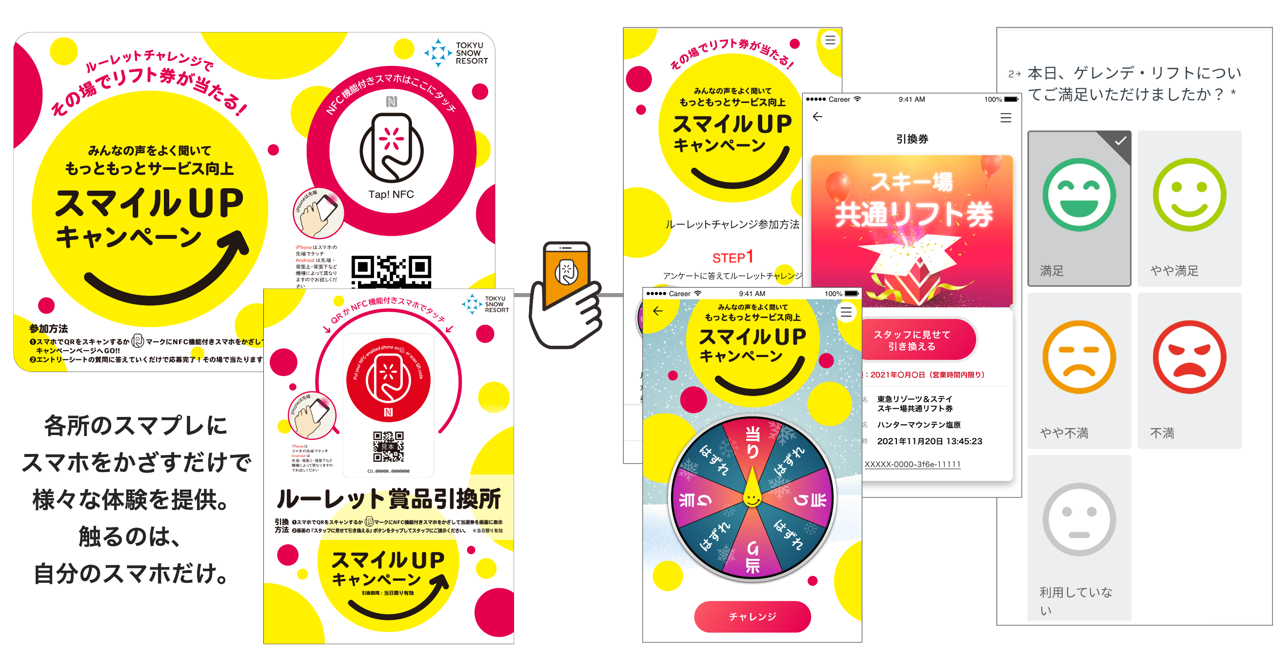 現在、本スキー場では倶知安町初の取組を支援する「着地型観光PR施策」の一環で、来場者向けの旅先納税(ふるさと納税)「倶知安e街ギフトKU-KURU」と連携したの取り組みを、2022年2月20日まで実施しております。また、非接触型お客様アンケート「スマイルUPキャンペーン」を実施しています。この取り組みでは、お客様の声をリアルタイムで収集し、即座に運営体制へと反映させサービス改善へと繋げています。お客様のスキー場における体験価値を一層高めるべく、今後も様々な取組を推進いたします。