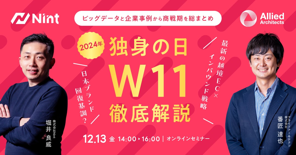 【無料WEBセミナー】アライドアーキテクツ×Nint「2024年独身の日(W11)徹底解説セミナー」を12月13日(金)に開催