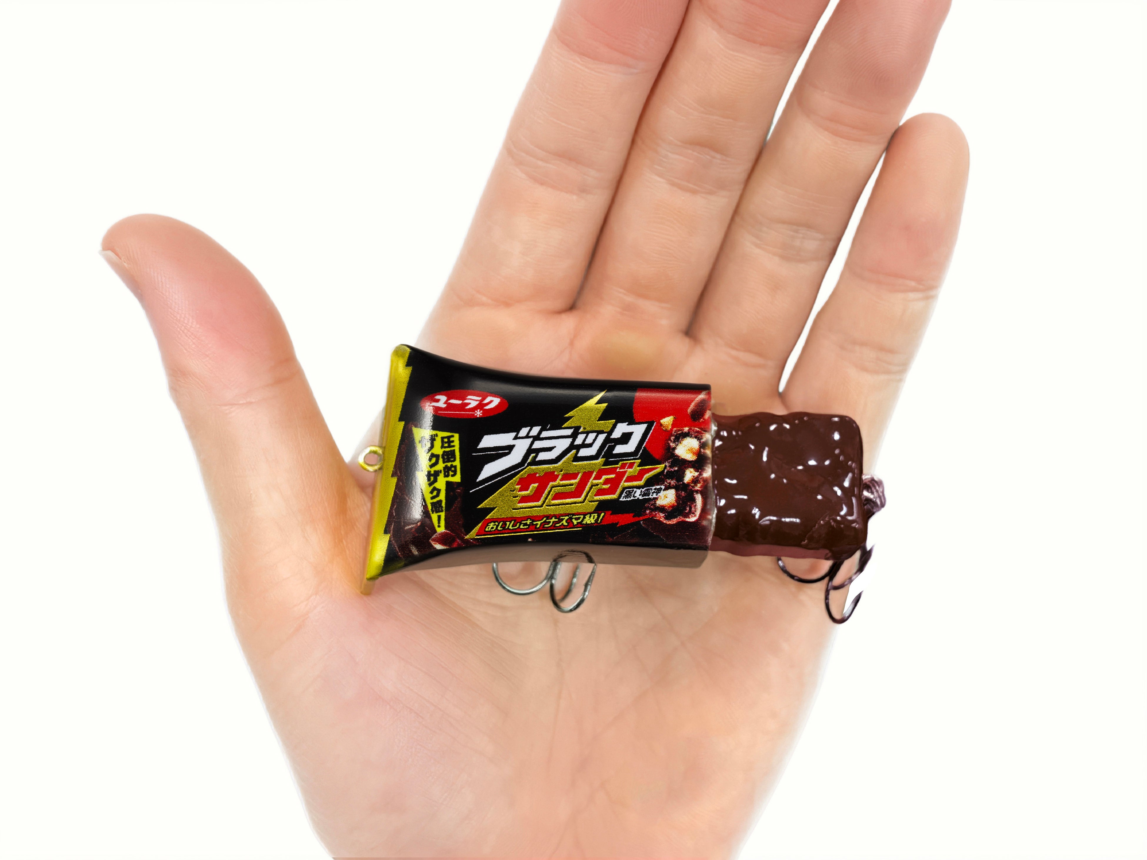 思わずかじりつきたくなるようなチョコバーのディテールを、質感・形状ともに忠実に再現。水中での存在感とリアリティを両立しました。
