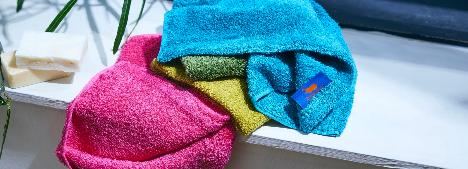 ヒポポタマスの特徴は、個性的なカラーリングだけではありません。吸水性、柔軟性、色合い、肌触り、速乾性……。すべてにおいてゆずらずに追求、選り抜きの素材と手間暇をかけた工程により、理想のタオルに仕上がりました。オーガニックコットンとエコ素材の再生竹繊維を織り混ぜることで、複雑で印象深いカラーリングと、爽快感のある独特な拭き心地を楽しむことができます。