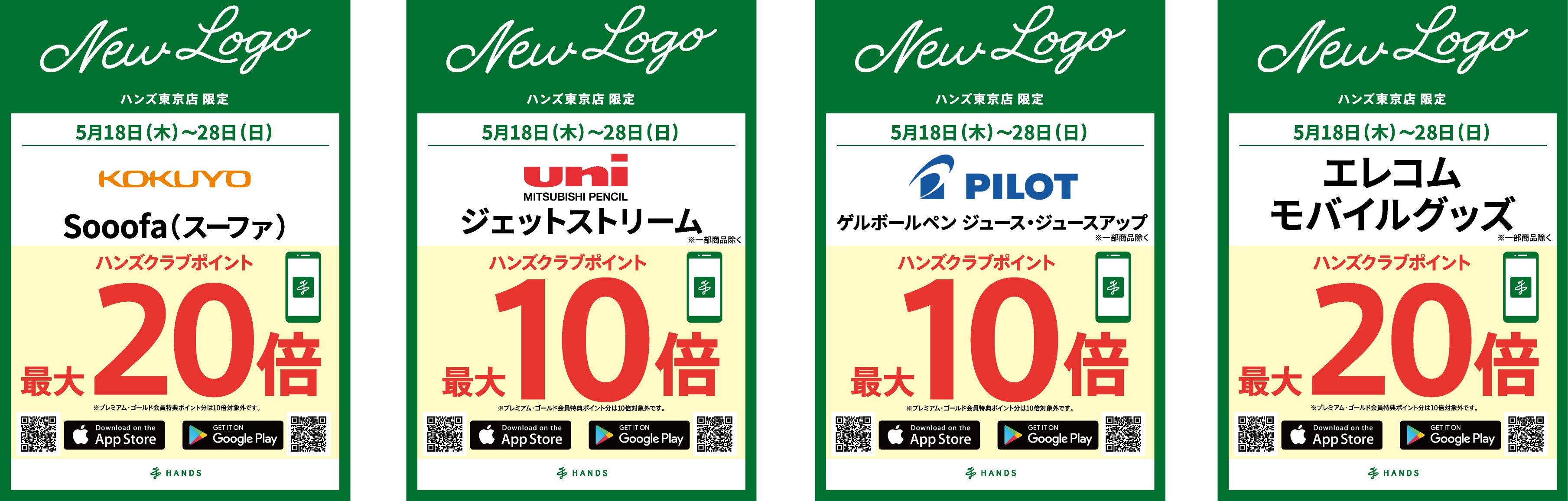 新たなロゴキャンペーンとして、対象期間中、該当商品のハンズクラブポイントアップ実施中です。