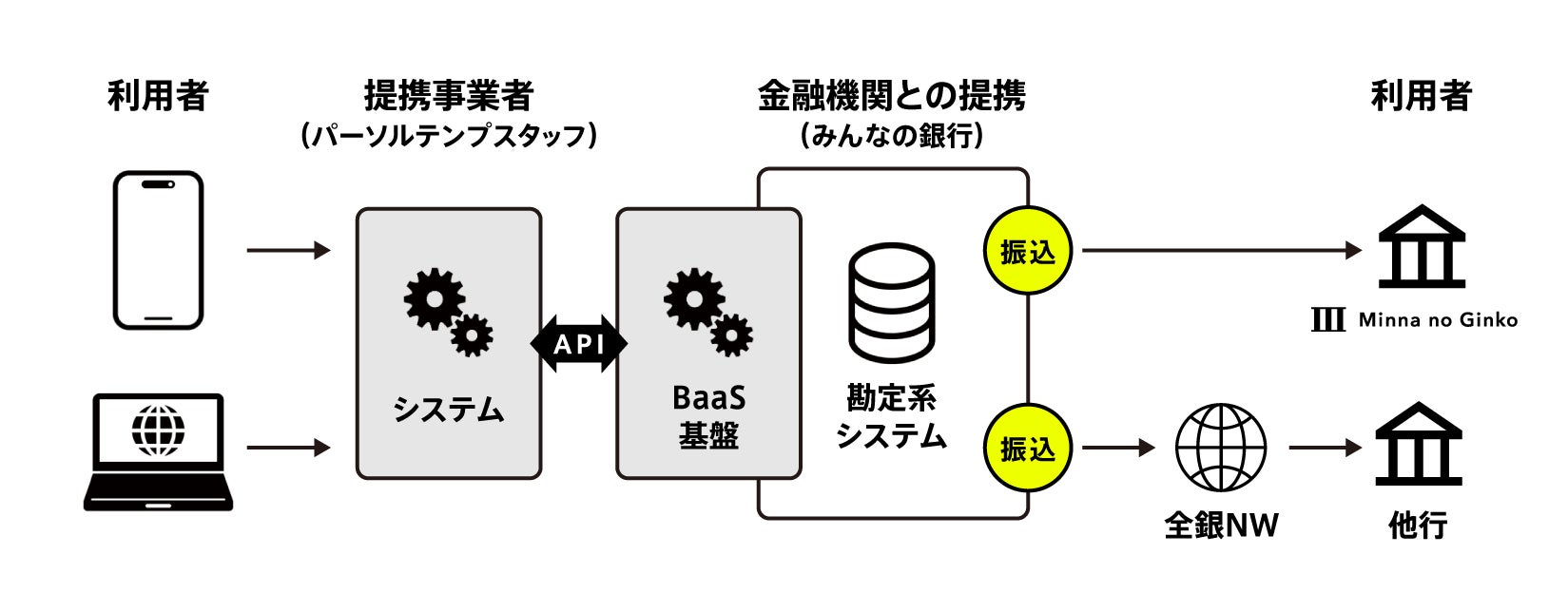 この度、2025年4月より開始の『給与前受け取りサービス』は、みんなの銀行が提供する更新系APIとの連携により、就業中の派遣スタッフ等が簡単かつ低コストで利用が可能となります。
