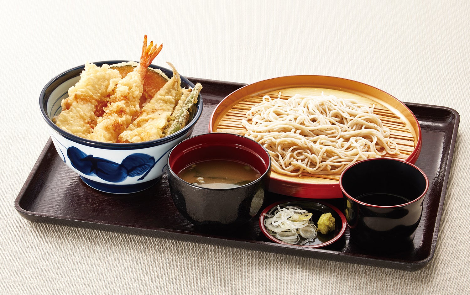 メイン商品は高品質でお値打ち価格の天丼と天ぷらです。天ぷらによく合うそば・うどん、冷たいソフトドリンクも提供いたします。