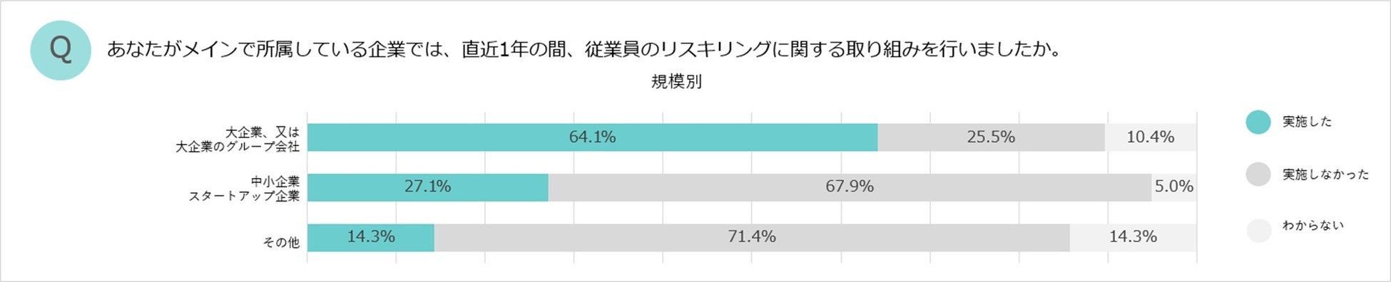 参考:リスキリングの取り組み率は、大企業(6割以上)>中小・スタートアップ企業 (2023年6月実施の定点調査より)
