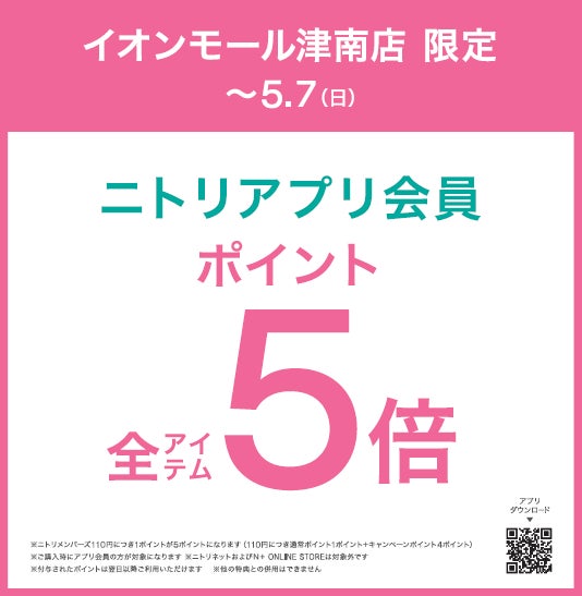 - 期間限定オープンキャンペーン② ※N+ イオンモール津南店限定(期間:~5月7日(日)まで)