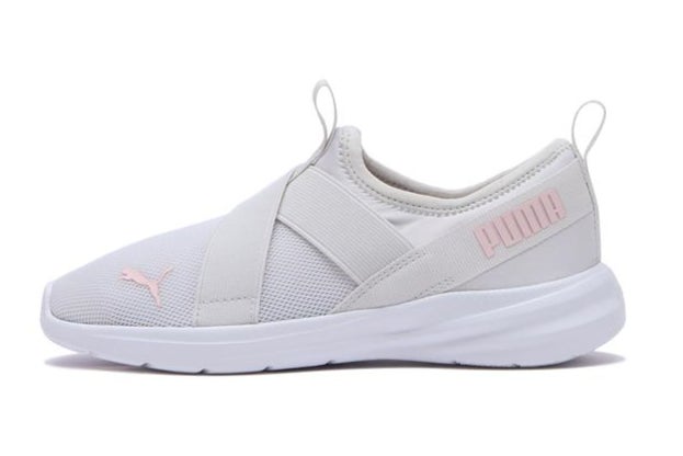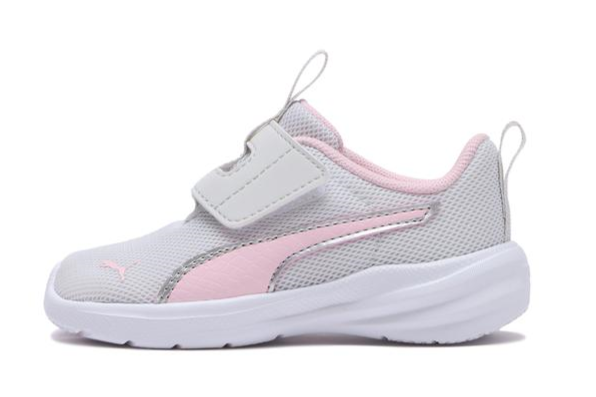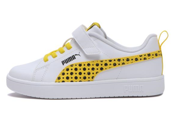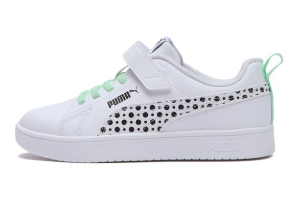 クラシックなバスケットボールシューズをイメージし、PUMAのアイコニックなフォームストリップを側面にデザインしたコートスタイルのラインです。上質なスタイルでありながら、お子様の足に負担がかからないよう、見た目以上の軽さを実現。アッパーには伸縮性のあるエラスティックバンドを採用したことで安心のフィット感を提供し、マジックテープ式のワンウェイベルクロージャーによって、小さなお子様でも脱ぎ履きが簡単な仕様ですです。ホワイトをベースに明るいトーンのカラーやドット柄を配した、これからの季節にもぴったりの爽やかなデザインに仕上がっています。