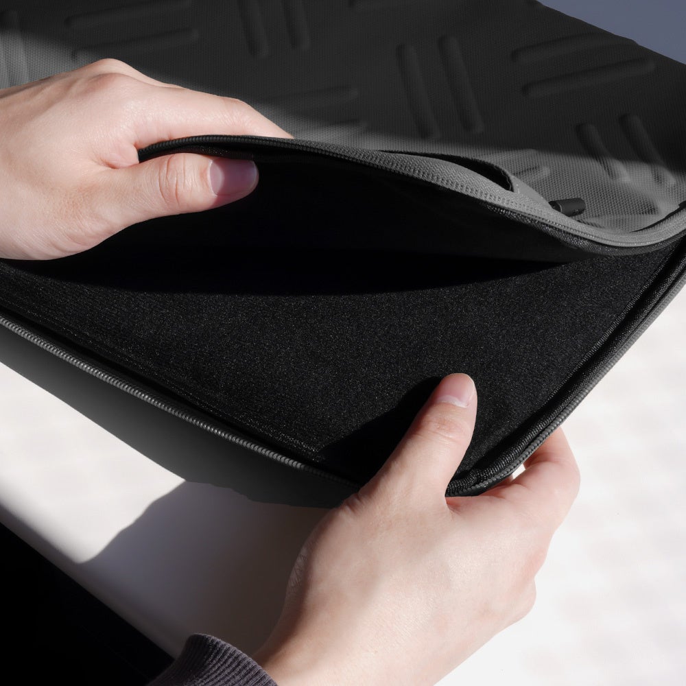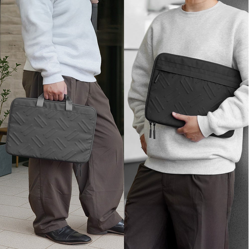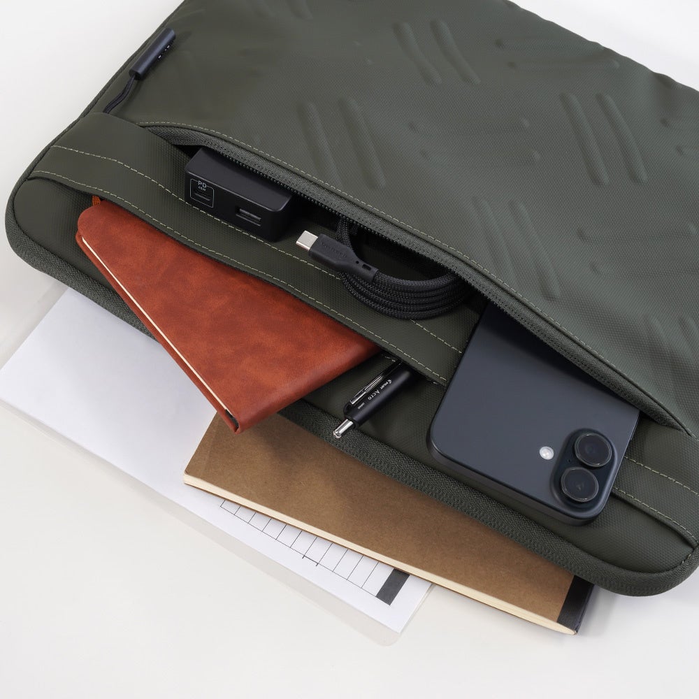 収納式ハンドルを備えており、単体のインナーケースとしても、手持ちのバッグとしても使えます。13〜14インチのノートPCやタブレットに対応し、通勤・通学・外出先でのモバイルワークを幅広くサポートします。