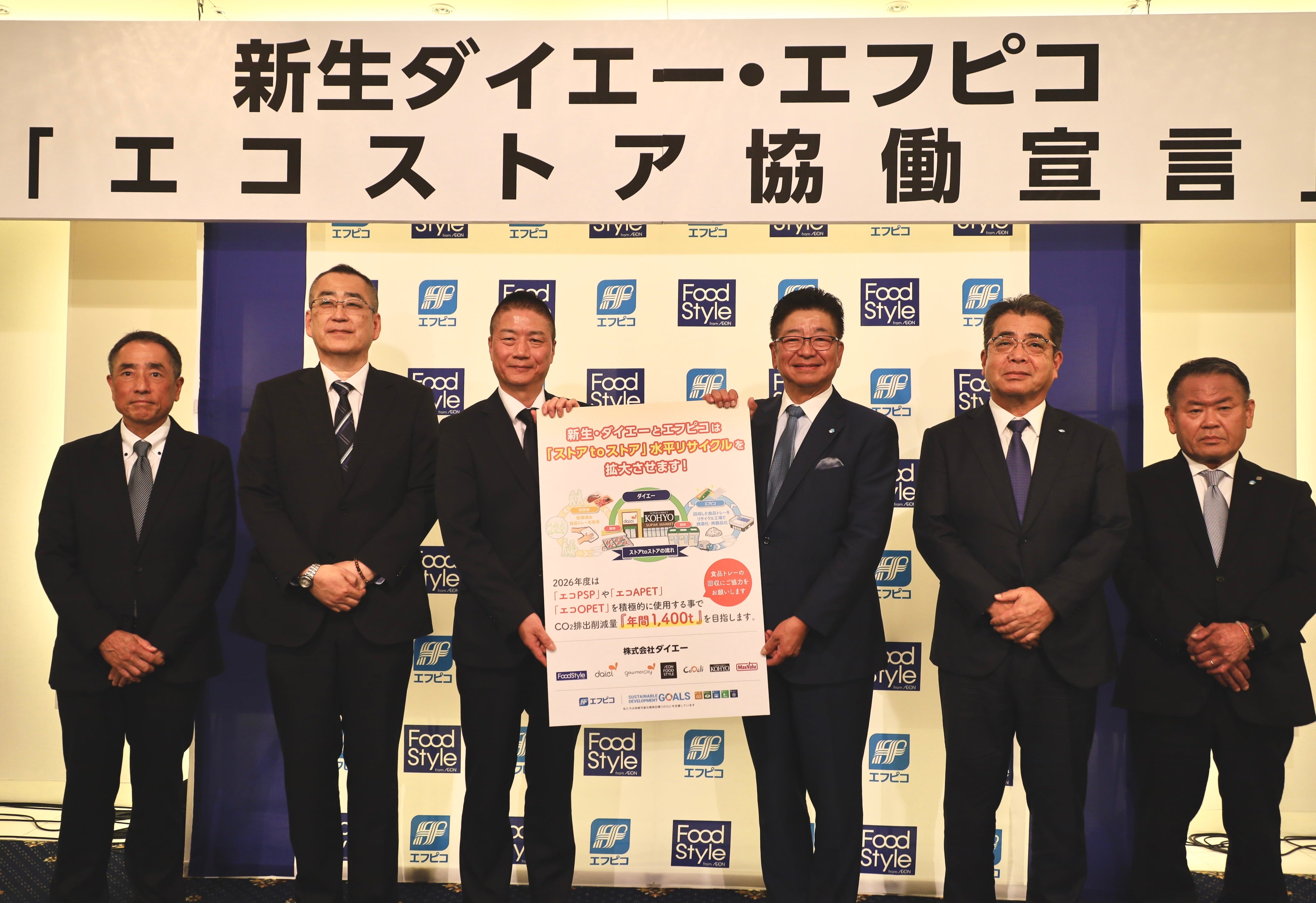 株式会社エフピコ(本社:東京都新宿区、代表取締役会長:佐藤 守正、以下「エフピコ」)と株式会社ダイエー(本社:大阪府茨木市、代表取締役社長:西峠 泰男、以下「ダイエー」)は、近畿エリアでスーパーマーケットを展開する187店舗において、持続可能な循環型社会の実現を加速させるため、「エコストア協働宣言」を締結し、水平リサイクル(※1)「ストアtoストア」の取り組みを強化・拡大することについて、2026年4月14日に共同記者会見を行いました。