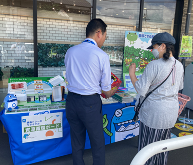 •使用済み食品トレーの回収量増加 : 地域のお客様のリサイクルへの参加を促すため、店頭でのリサイクル啓発ポスターやデジタルサイネージでの情報発信による積極的なPR活動を行うとともに、環境啓発イベントの開催を行い、使用済み食品トレーの回収量増加を図ります。