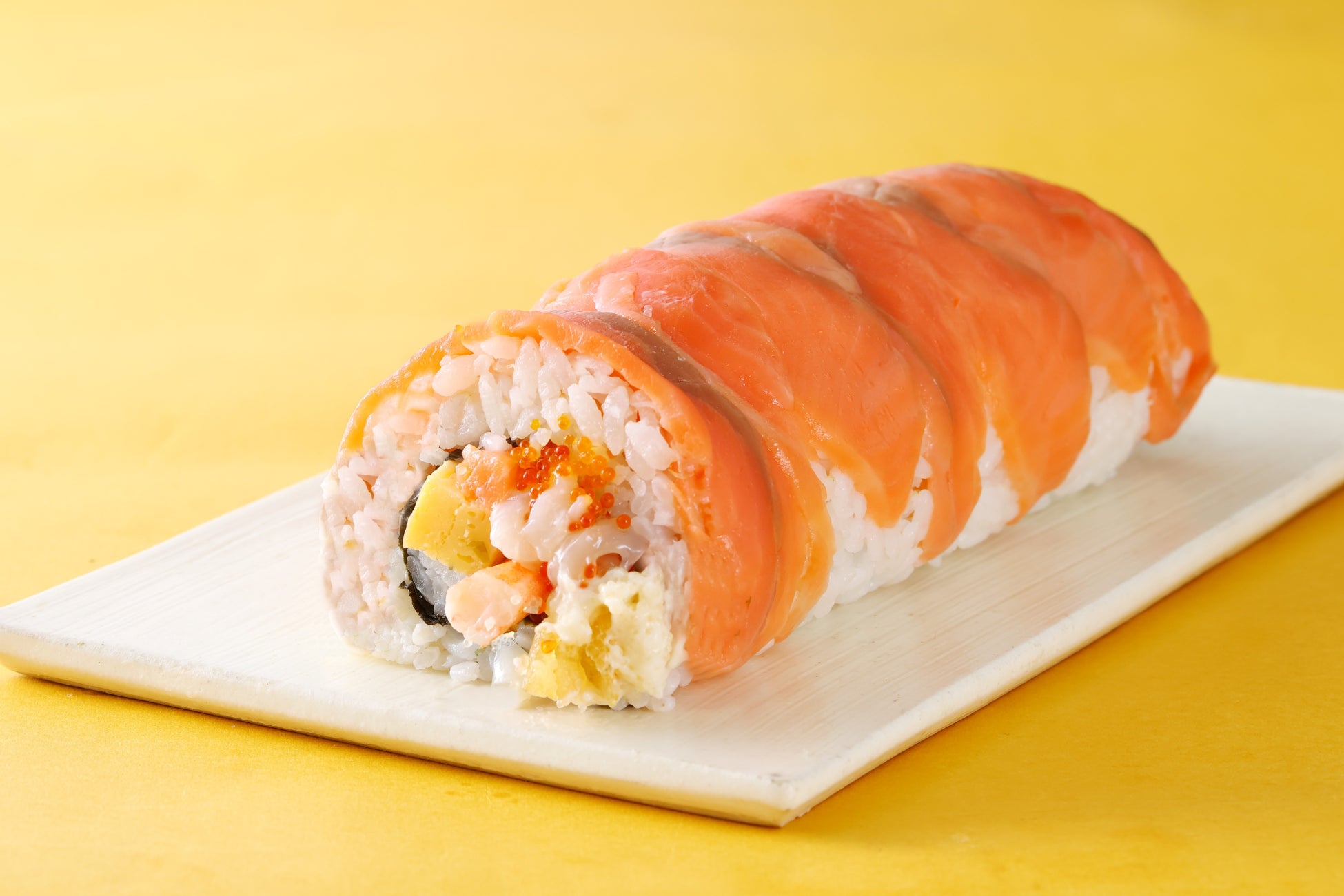 3種のサーモン(銀鮭、サーモントラウト、アトランティックサーモン)が入った恵方巻。