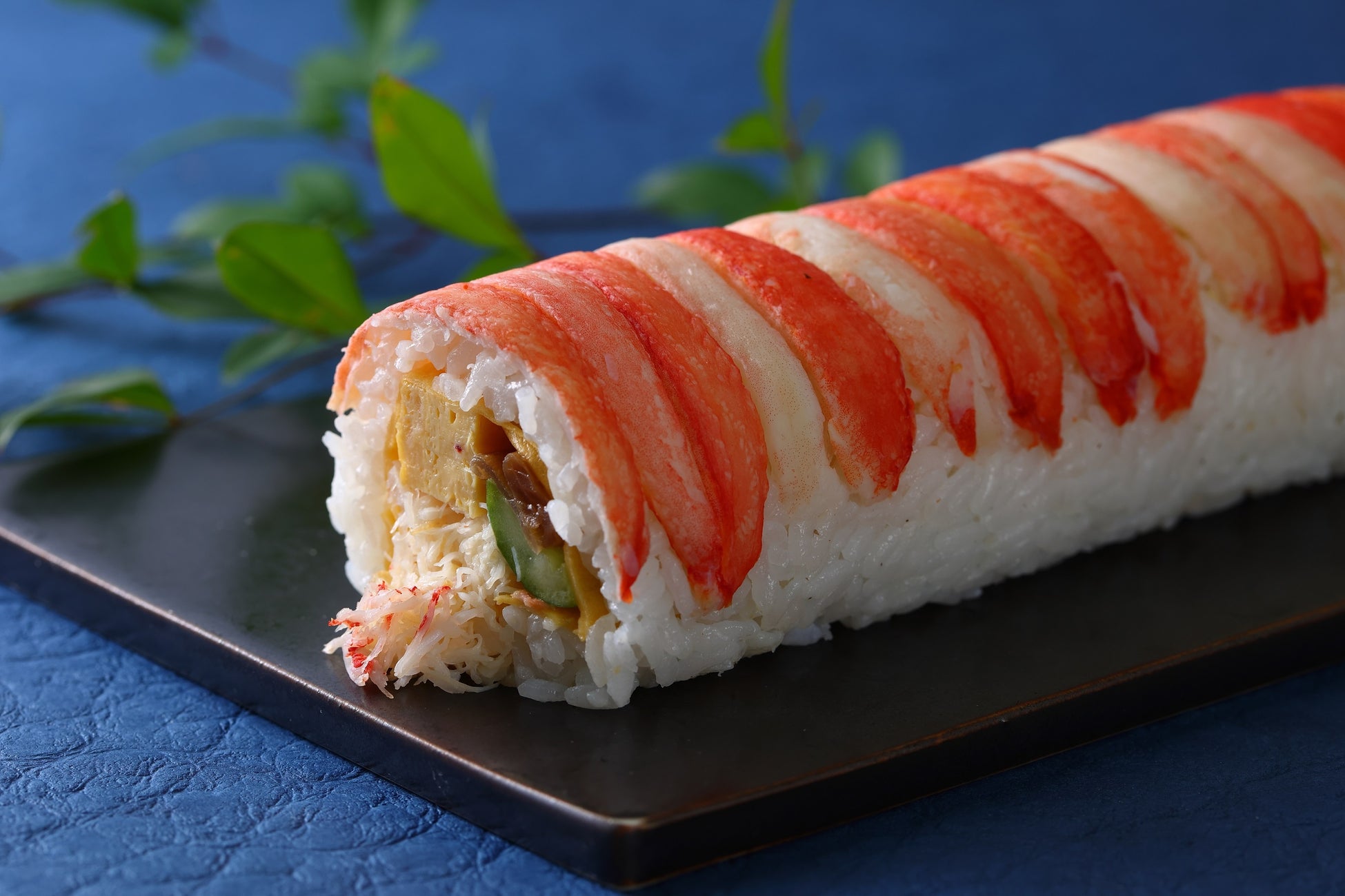 ずわいがにのほぐし身をふんだんに使用し、海苔の代わりにずわいがにの棒肉で巻いた、かにづくしの究極の恵方巻。