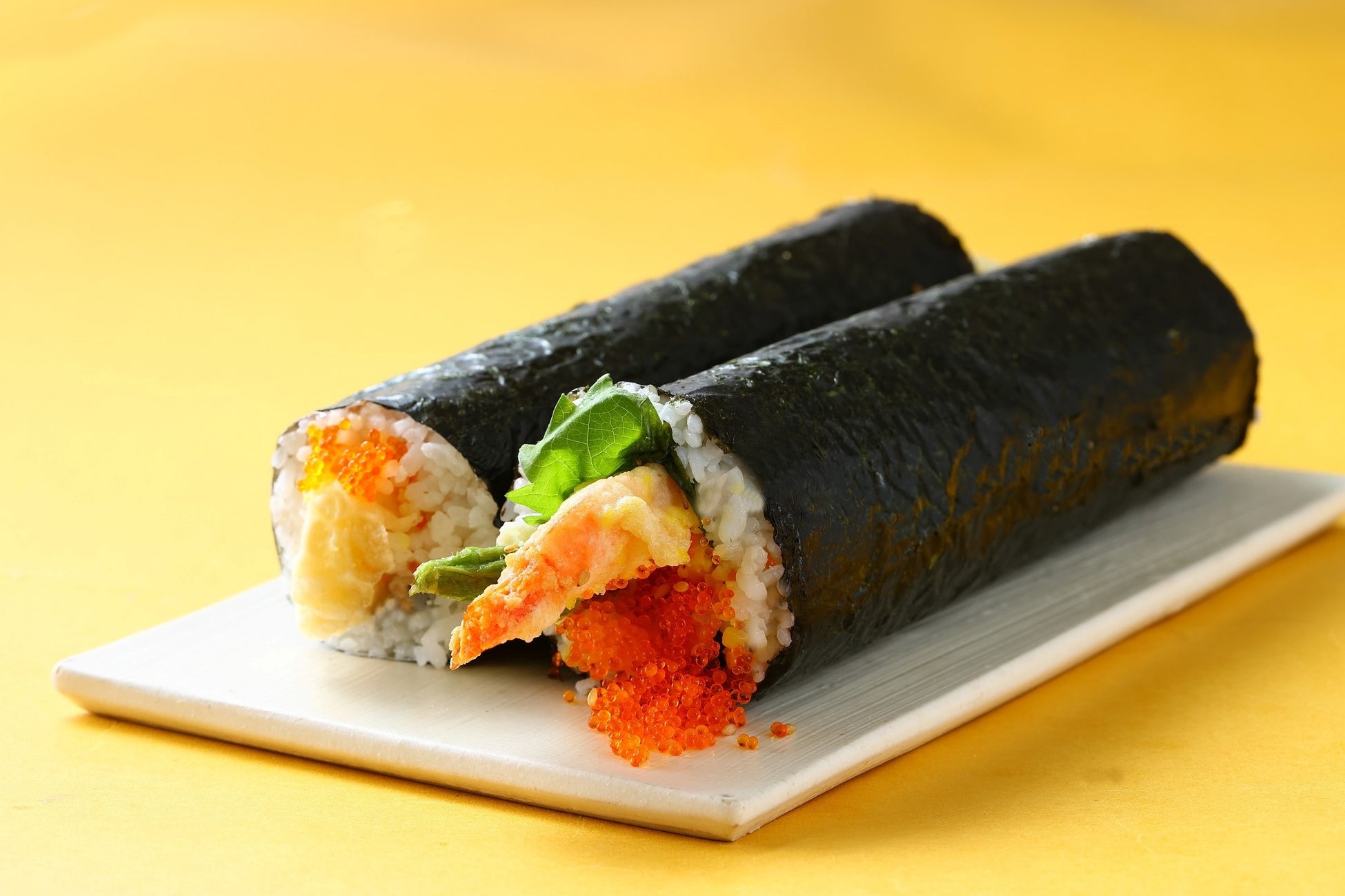 人気の海老天を恵方巻にしました。ガリととびっこの食感もお楽しみください。