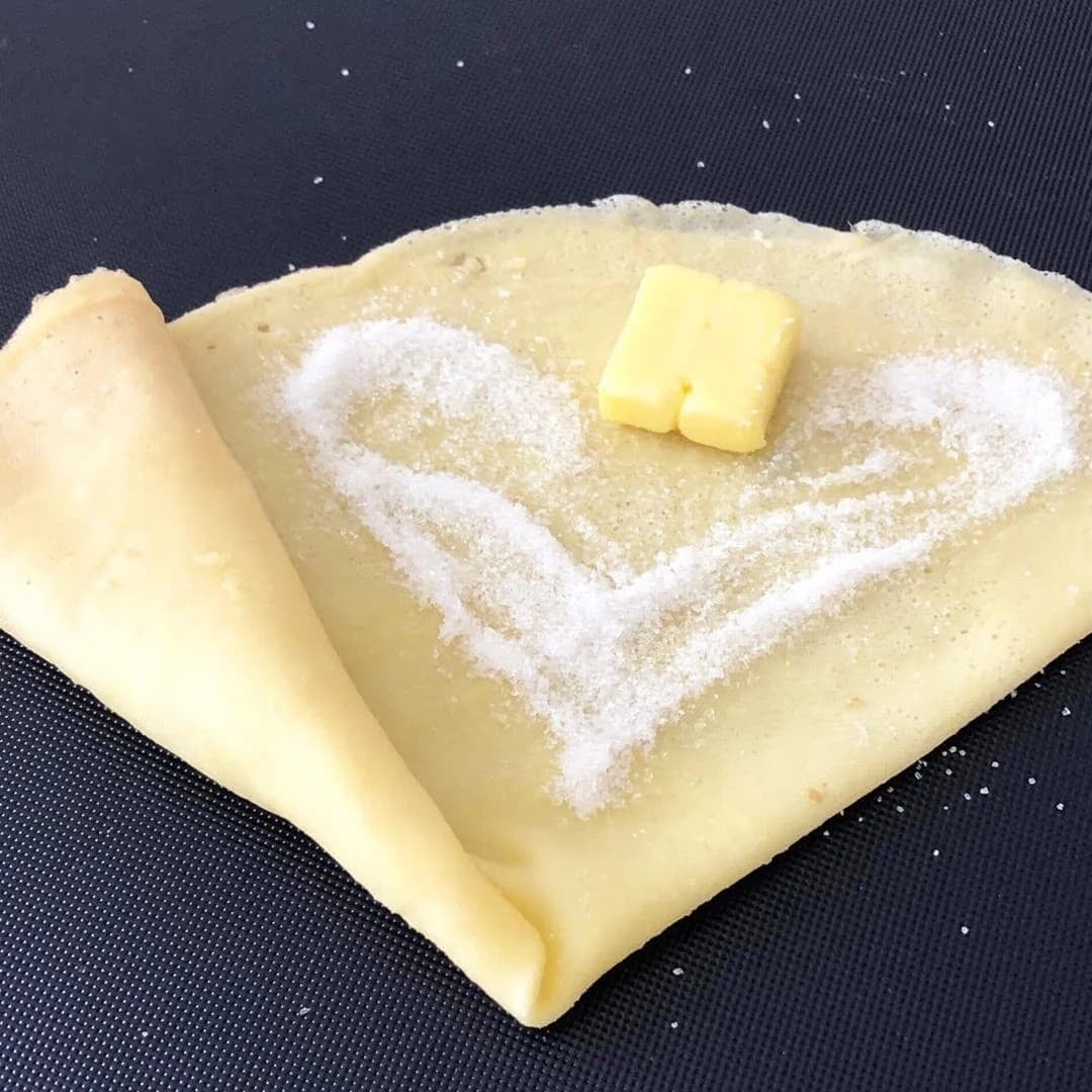 もちもちカラフルな生地のおしゃれなクレープです。お食事系クレープや、ドリンク類等も取り揃えております。北海道グルメフェスということなので、北海道産バター使用のシュガーバタークレープをご用意します!