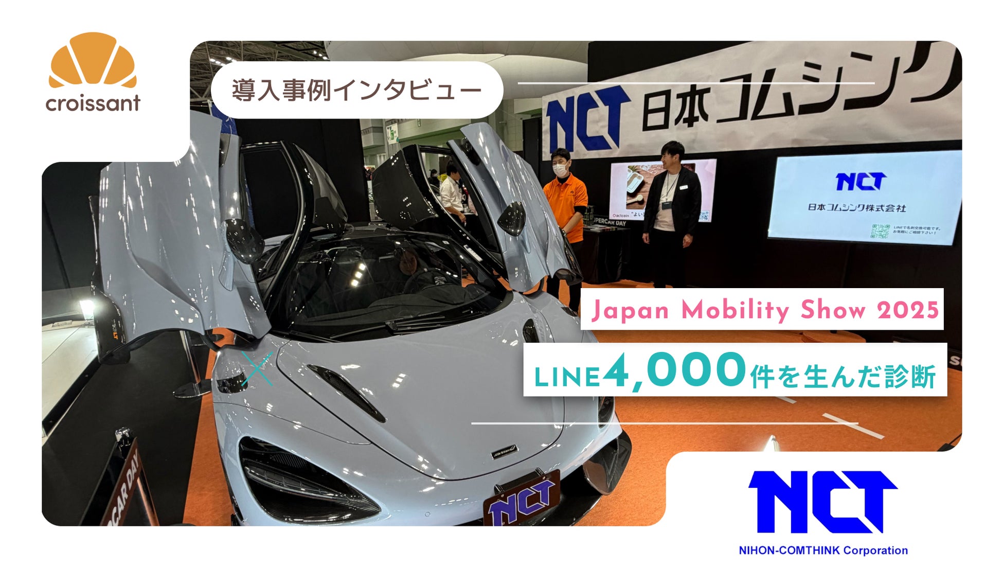 今回ご紹介するのは、JAPAN MOBILITY SHOW 2025における日本スーパーカー協会様の事例。出展支援を担う日本コムシンク様により、現場で安定稼働し、LINE連携とデータ取得まで一体化できる「クロワッサン」が導入されました。