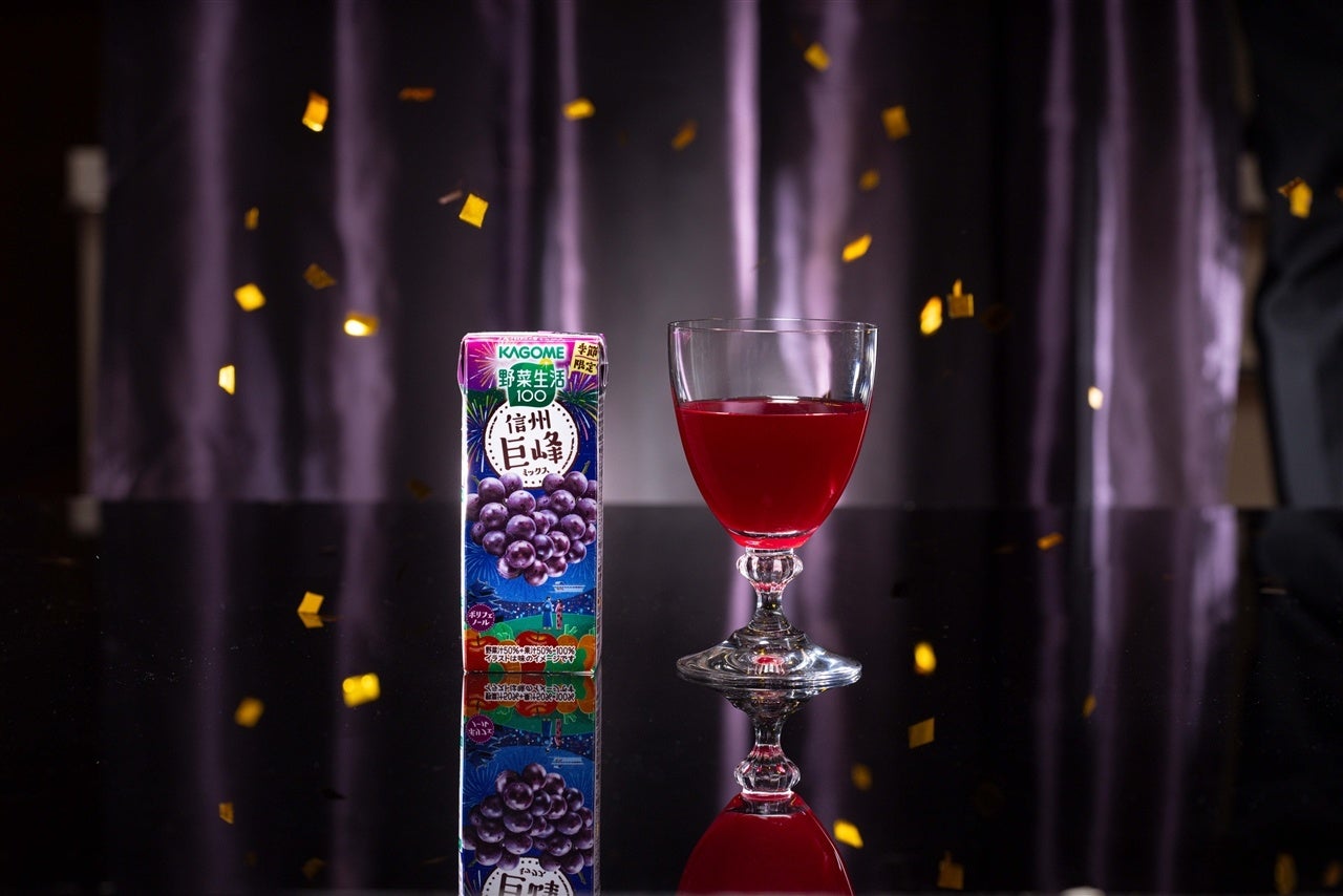 このたび発売する「野菜生活100 信州巨峰ミックス」は、力強さが十分に詰まった長野県産巨峰の味わいの野菜・果実100%ミックスジュースです。りんごやクランベリーを加えることで、フルーティーな香りと甘みを引き立て、さらに、果実のピューレを絶妙なバランスで配合することで、巨峰ならではの力強い味わいを表現しています。