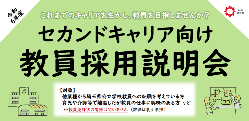 【埼玉県】令和6年度実施 埼玉県公立学校 教員採用選考試験の要項及び採用案内を公開しました