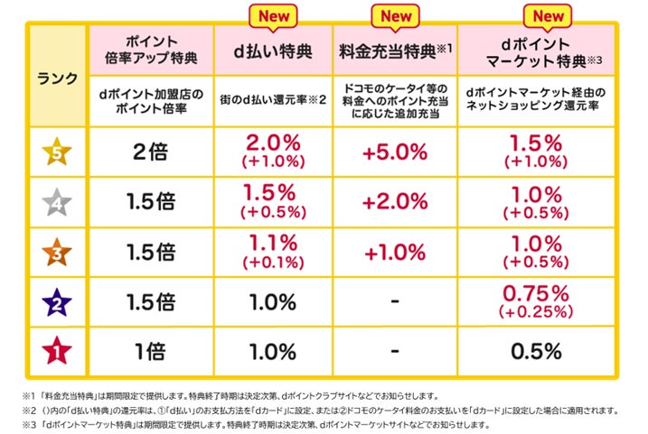 ※ 2024年5月15日「ドコモのポイントプログラム『dポイントクラブ』を改定」で発表した改定内容に「dポイントマーケット利用特典」を追加したものです。