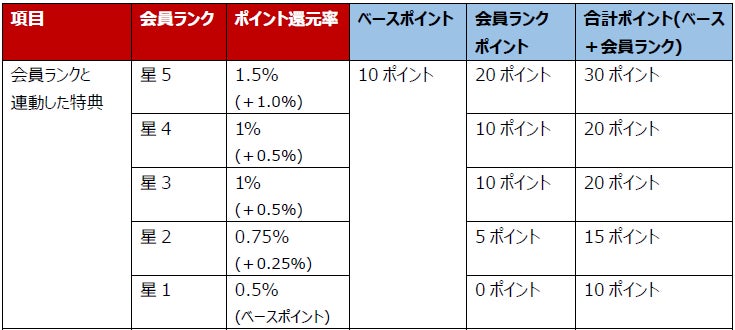 ※2 ベースポイント0.5%に対し、会員ランクがアップするほどポイント還元率がアップします。詳細は別紙1をご確認ください。