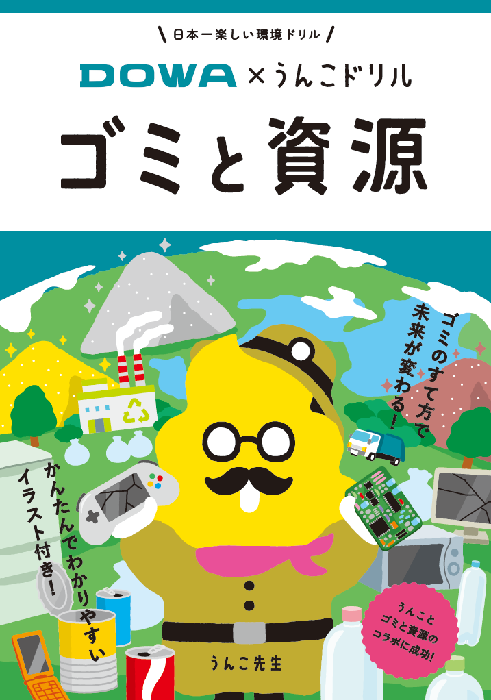 ゴミをただしく分別して捨てることの大切さをもっと多くの人に知ってほしいという想いから、累計1000万部を突破し小学生に圧倒的な認知を誇る「うんこドリル」シリーズとDOWAグループがコラボして制作した冊子「うんこドリル ゴミと資源」。