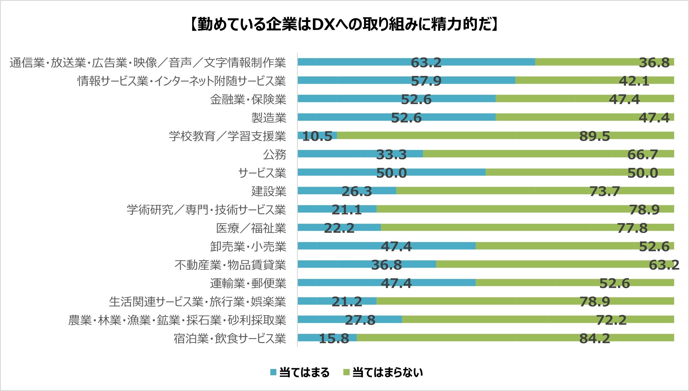 通信業・放送業、情報サービス業、金融業・保険業は安全にDXを推進中。
