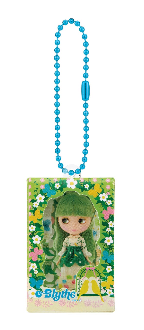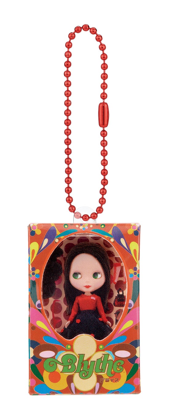 また、箱の中にディスプレイされている「ブライス」本体や小物は、全て取り外して整えた状態で新たに撮影し、透明シールに印刷してからプレートに貼りました。これにより商品の細かな部分まで目で見て楽しむことができます。 さらに、付属のボールチェーンも商品のイメージに合わせてそれぞれ色をセレクトしています。