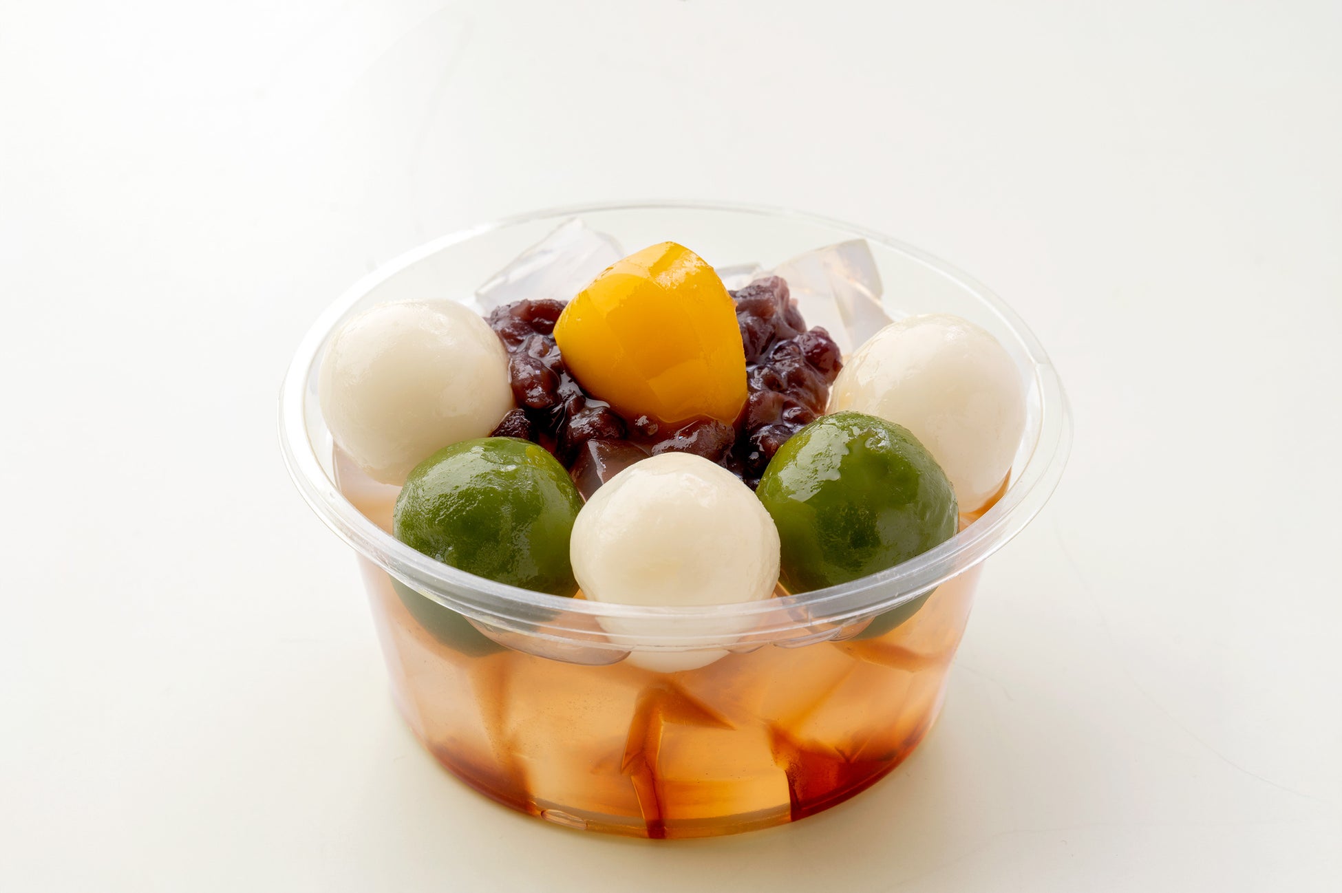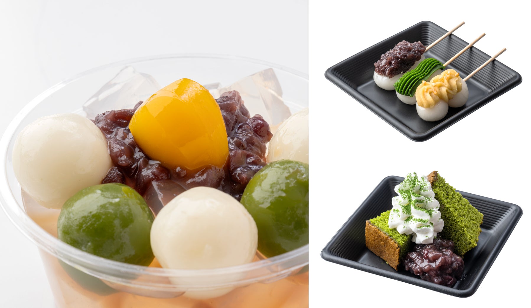 なかでも「白玉だんご」は、そのもっちりした食感に3つの異なる味わいの「あんこ」「抹茶あん」「芋あん」をトッピングしたオリジナルメニュー。少しずつ色々な味を楽しみたいというスイーツ欲を満たしてくれます。ふんわり優しい甘さの「カステラ」にはあんことホイップをトッピング。さらに「あんみつ」は抹茶白玉やごろっとした栗の甘露煮を添えて、食べごたえもしっかり感じられるスイーツに仕上げました。