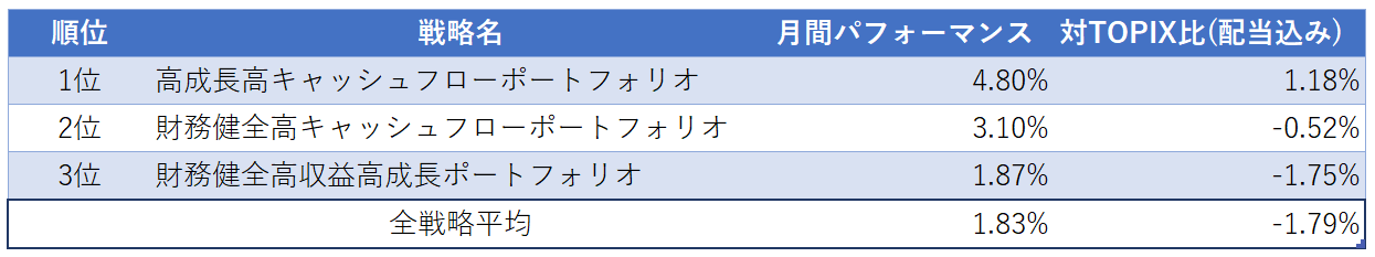 ◯月間パフォーマンスが良かった戦略