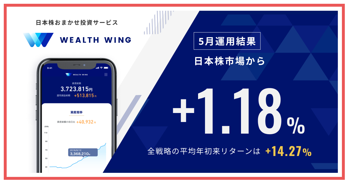 Finatextグループの日本株おまかせ投資サービス『Wealth Wing(ウェルスウイング)』、5月は日本株市場を1.18%上回る運用結果に。