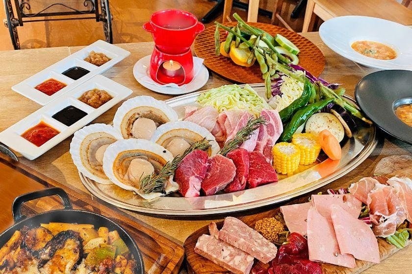 (7)手ぶらで楽しめるバーベキュー、地産地消の食事