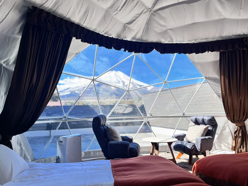 都内から90分、富士山を眺める絶好のロケーションに山中湖に開業する独自の全室完全“プライベートスペースグランピング”です。