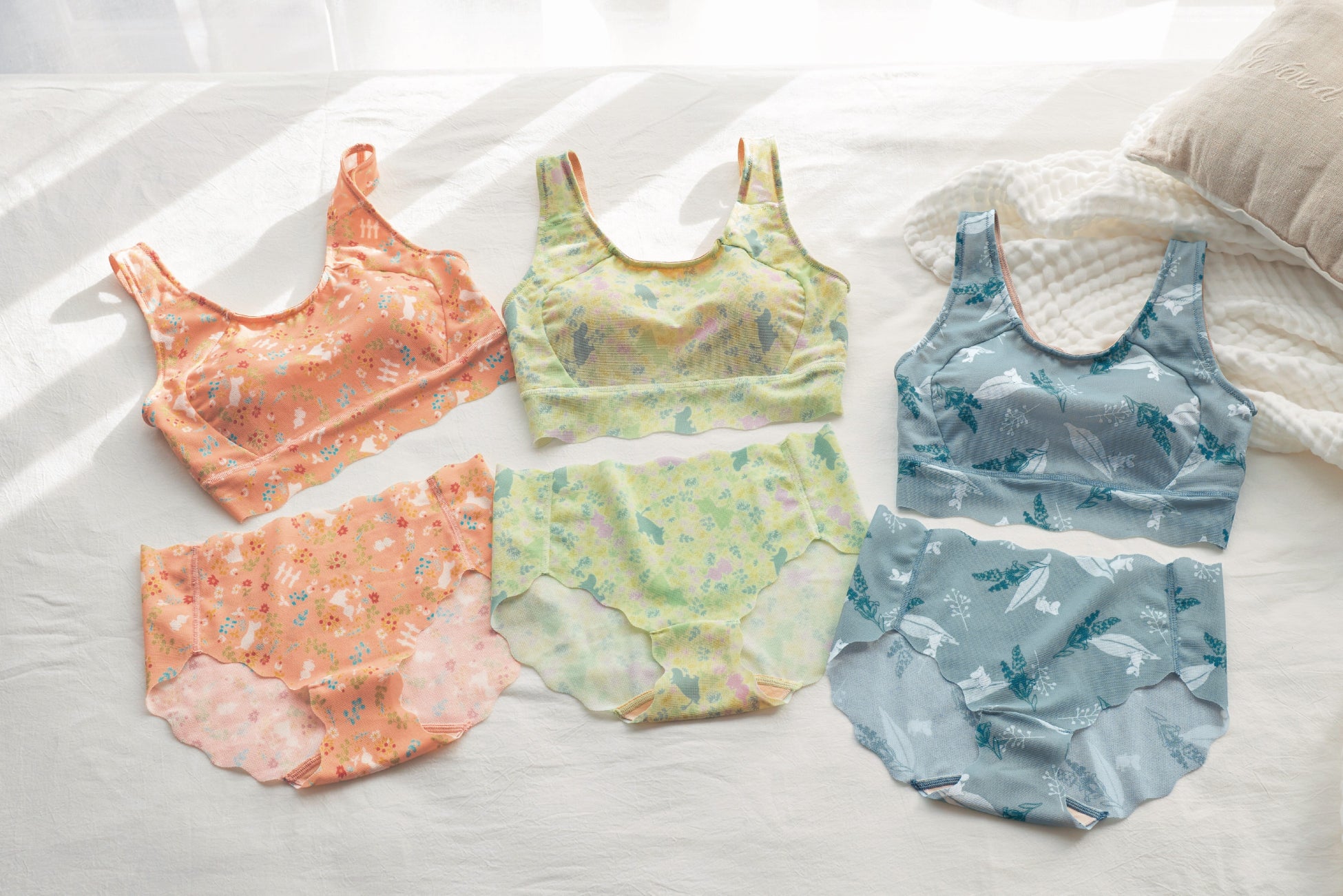 大人の女性に向けたムーミンデザインのインナーアイテムに新作が登場します。これまでのお客様の声を反映し、素材やデザインをリニューアルしました。ハーフトップはノンワイヤーながらしっかりホールド感のある仕様で、淡く優しいカラーにボタニカル柄やフラワーモチーフを組み合わせ、さりげなくキャラクターをあしらったデザインです。ハーフトップ、ショーツともにフリーカット仕様で、洋服に響きにくく、波模様のような縁取りがアクセントになっています。ムーミンの世界観と快適な着心地を同時に楽しめるインナーです。