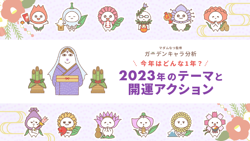 このガーデンキャラ分析から、2023年を生きるうえでのポイントと開運アクションを診断するコンテンツ「2023年 キャラクター別診断」を今年も配信いたします。