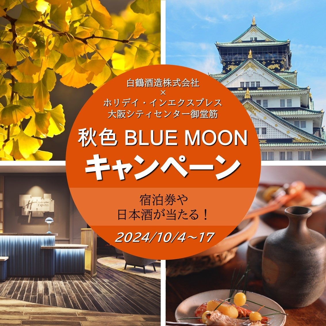 ホリデイ・インエクスプレス大阪シティセンター御堂筋(以下、ホリデイ・インエクスプレス)と白鶴酒造株式会社は、コラボ宿泊プラン「秋色BLUE MOONステイプラン」(※)の販売を記念して、10月4日(金)から「秋色BLUE MOONキャンペーン」を開催します。
