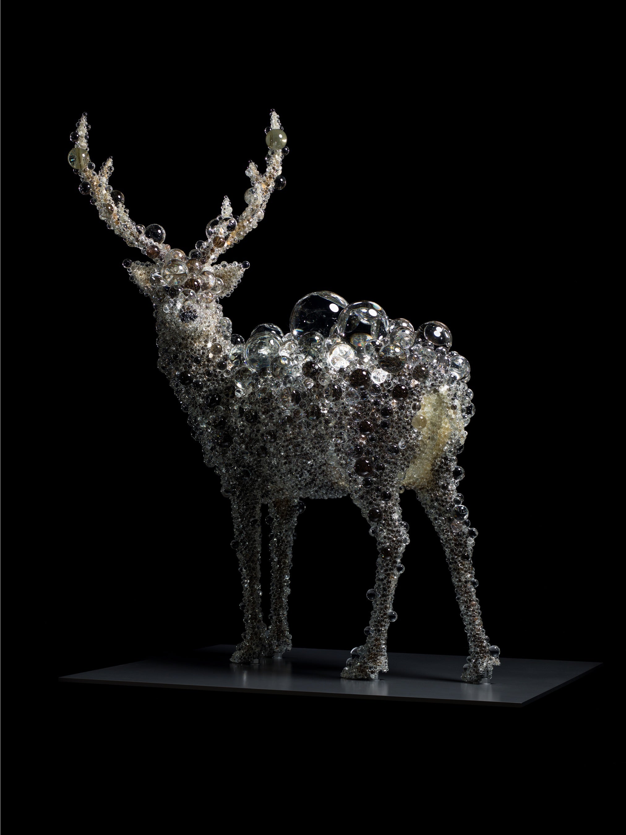 彫刻家・名和晃平の代表作のひとつである《PixCell-Deer#48》のみを展示した、本展覧会だけの空間は必見です。また、鑑賞者が鏡に映り込むことで作品が完成するマンゴ・トムソン《November 14, 2016 (The End is Near)》やユニークな展示台に置かれた立体作品を発見することができる楽しい空間構成となっています。