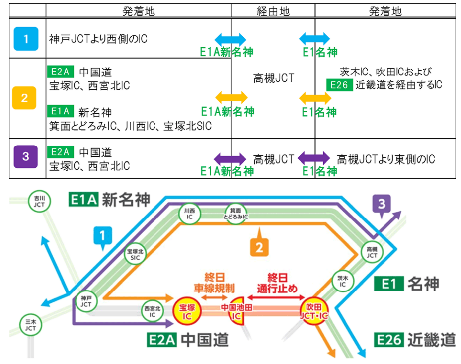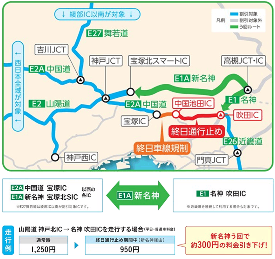 E1A 新名神高速道路などへのう回やご利用時間の変更をお願いします