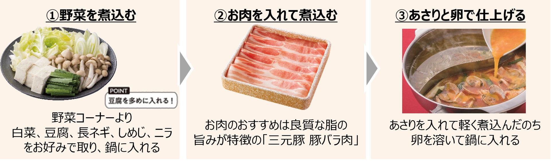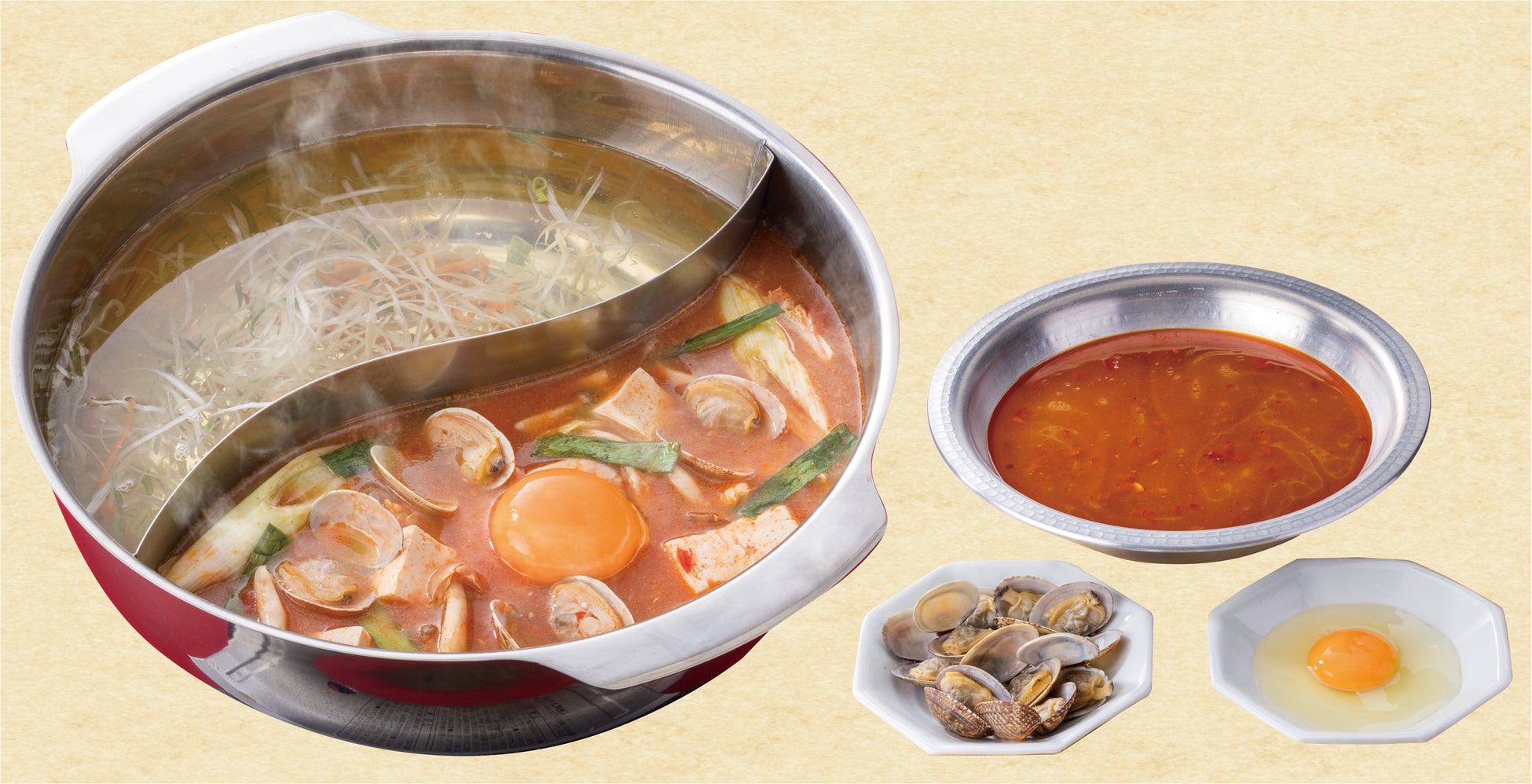 ◆「スンドゥブ風鍋だし」を使った、豚バラ肉×あさりのコク深「スンドゥブ風鍋」
