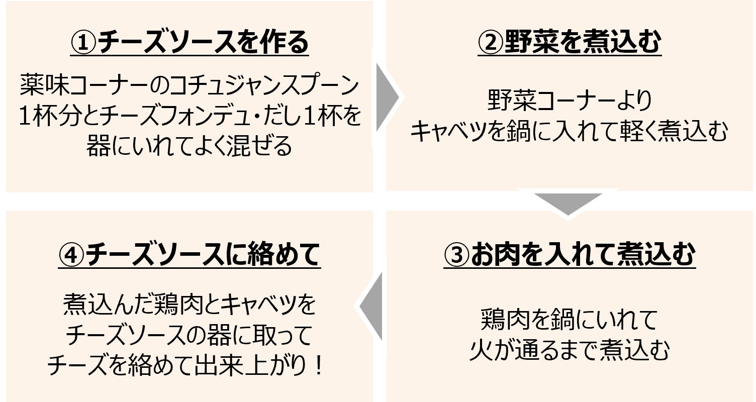 野菜コーナーの「キムチ」を加えて“キムチーズタッカルビ風”に