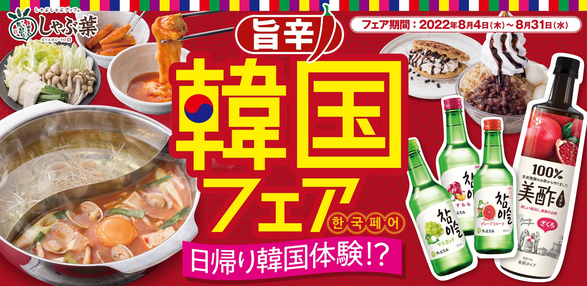株式会社すかいらーくレストランツ(本社・東京都武蔵野市、代表取締役社長 大川原利明)が運営する「しゃぶ葉」では、2022年8月4日(木)より、夏にぴったりな韓国グルメを展開する「旨辛!韓国フェア」を開催いたします。