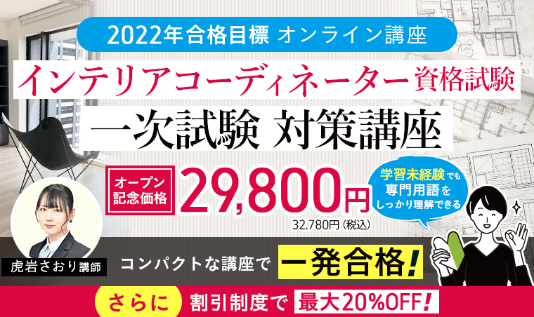 【2022年合格目標】インテリアコーディネーター資格試験 一次試験対策講座をリリース