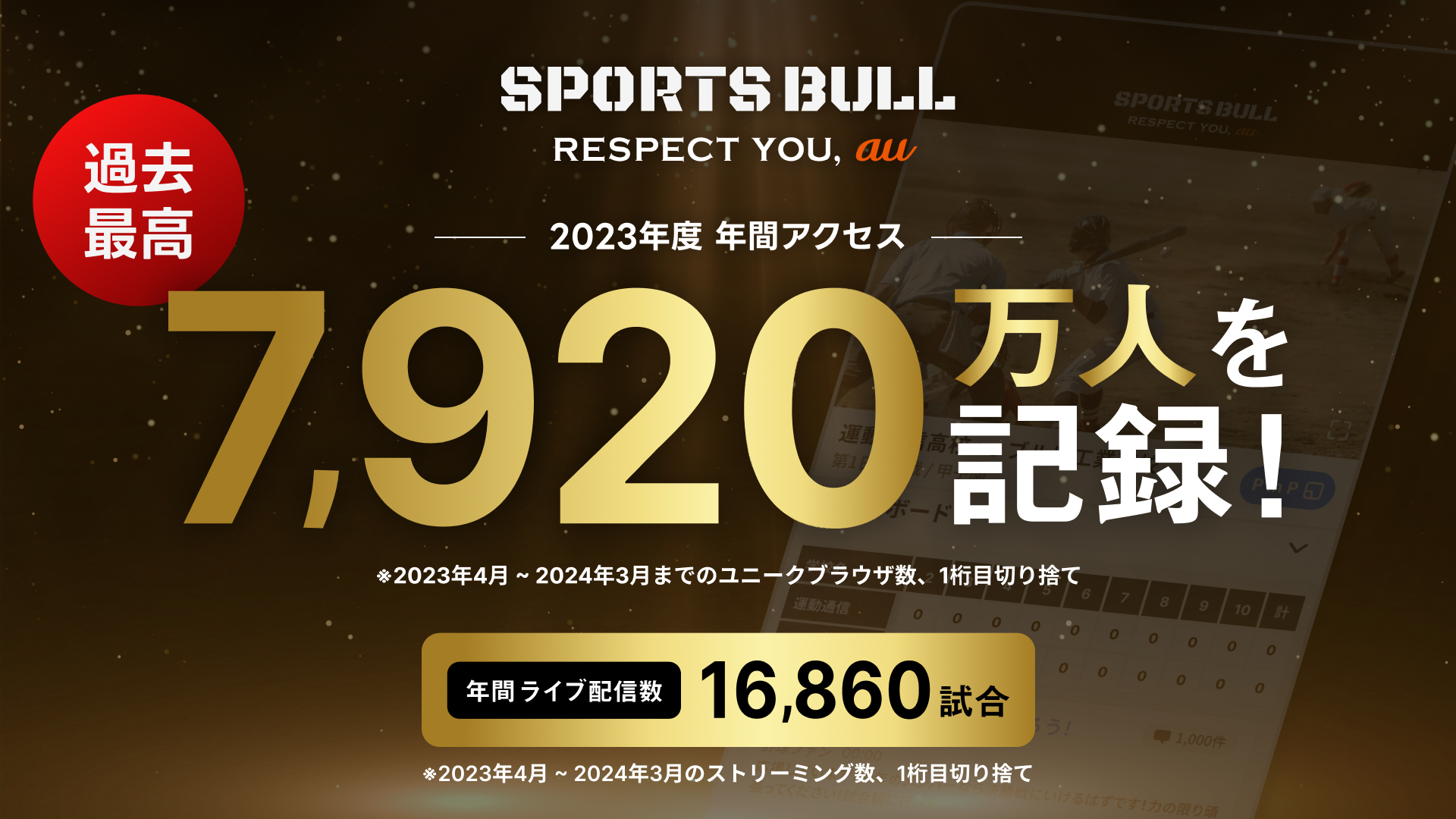 サービス開始から8年目となった2023年度、過去最多の年間16,860試合以上のライブ配信を実現し、年間来訪者数(ユニークブラウザ数)においても7,920万人(前年比121.0%)を記録。過去最高だった2022年度を更に上回る結果となりました。