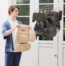 両側の「持ち手」でラクに安全に持ち運びができ、専用のシートホルダーで、そのままお部屋でも使えるようになりました。