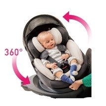 赤ちゃんを抱っこしながらでも、片手でクルッと360°ターン。ドア側にクルッと回すとシートが簡易ロックされるので、乗せ降ろしがラクラクです。