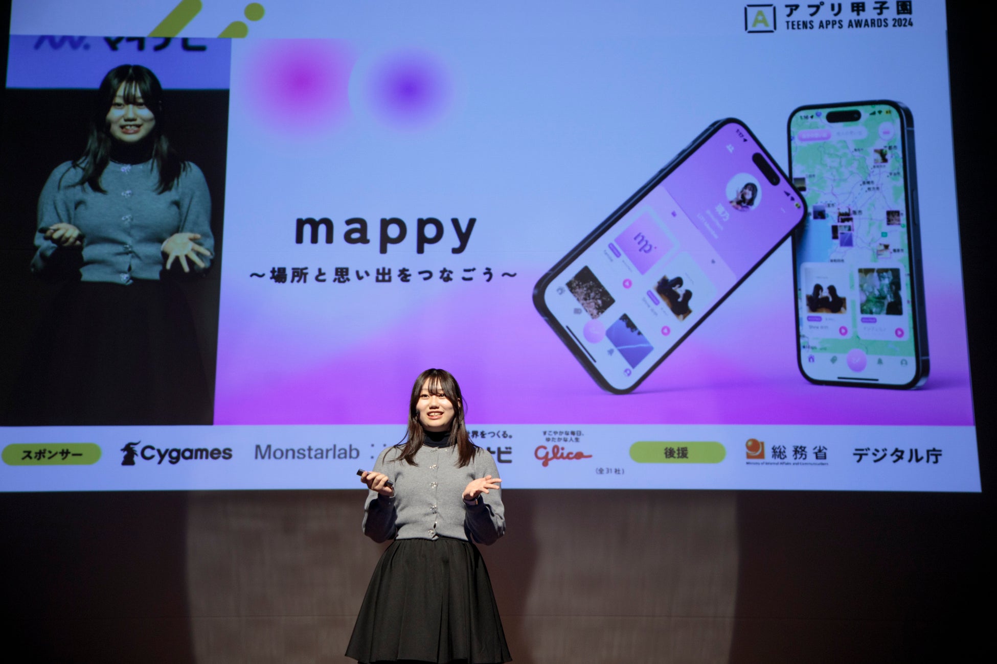 『企画力×技術力』をもとにした厳正なる審査の結果、「アプリ甲子園2024」一般開発部門の優勝は、伊藤璃乃さんによる、思い出と場所を繋げ記録することで、新たな”思い出記録体験”ができる「mappy」、本年新設されたAI開発部門の優勝は、得丸創生さんによる、AIとの対話を通して子どもたちがプログラミングを楽しく学べる「TutoriaLLM」に決定しました。