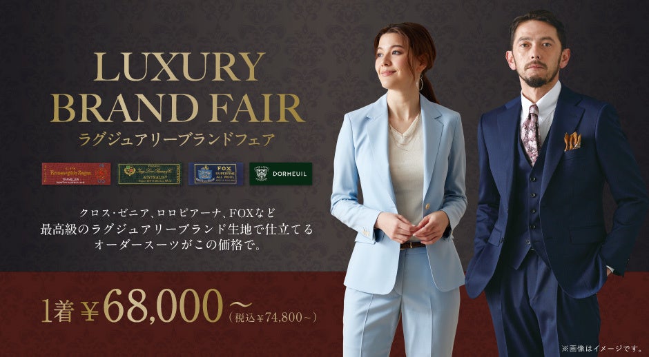 【ラグジュアリーブランドフェア】でワンランク上のオーダースーツ作りをお楽しみください。