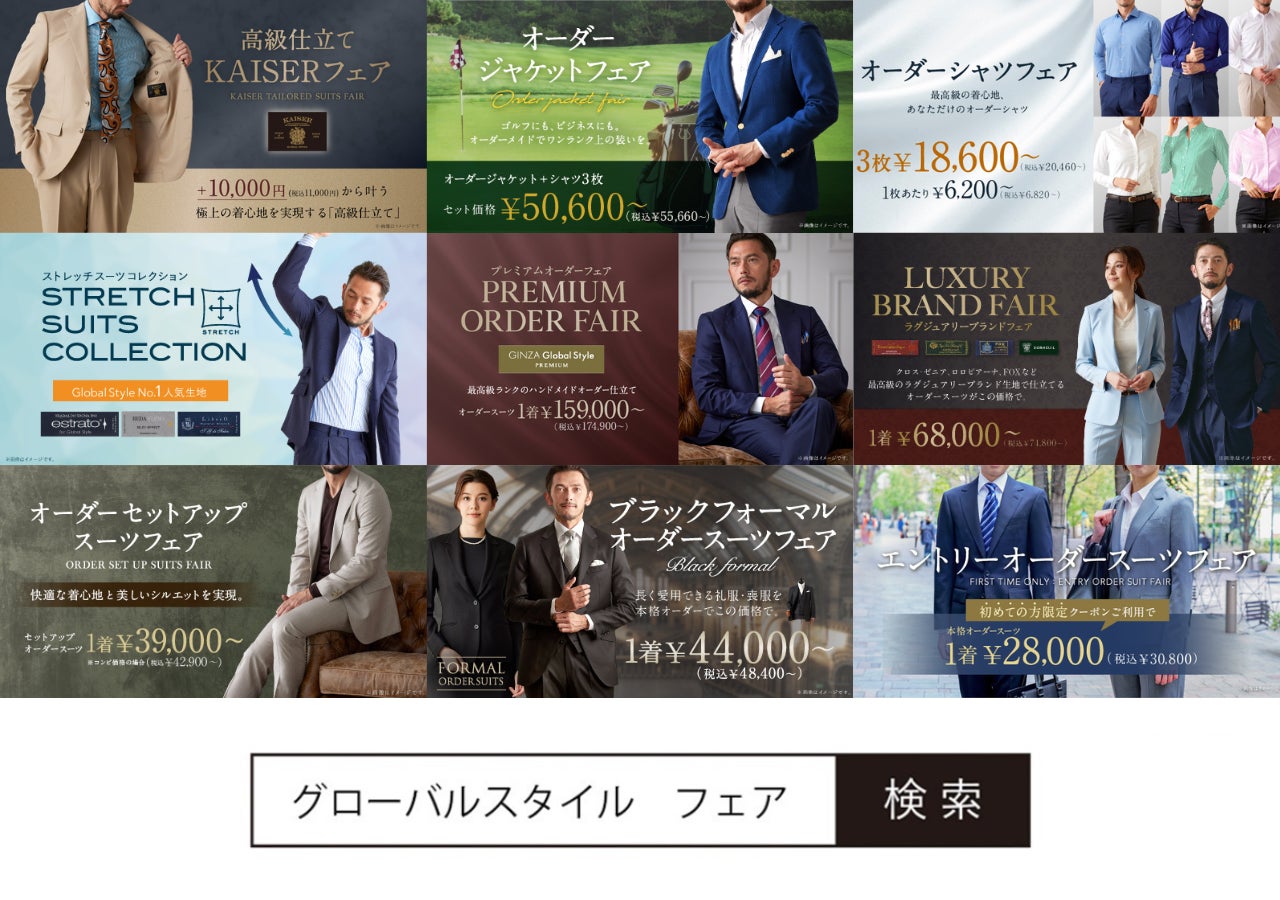 最新のトレンドから定番アイテムまで、お得な情報が盛りだくさん。グローバルスタイルで検索して、自分に合ったフェアを見つけてみてください!