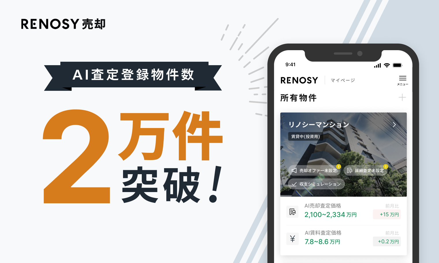 RENOSY、AI査定済みの売却検討物件が累計2万件突破。投資用不動産に特化した査定方法により、精度の高い価格提示が可能