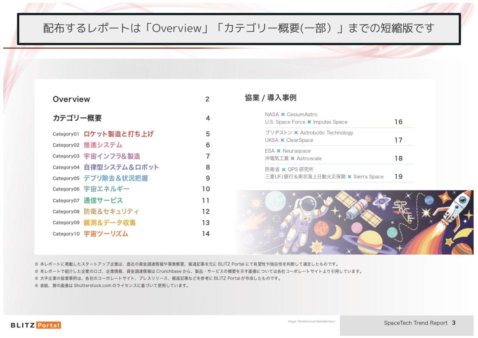 “推進システム”、“宇宙インフラ&製造”、“宇宙エネルギー”など10カテゴリに分けたスタートアップ情報と協業事例をまとめた「スペーステック」トレンドレポートをリリースしました。