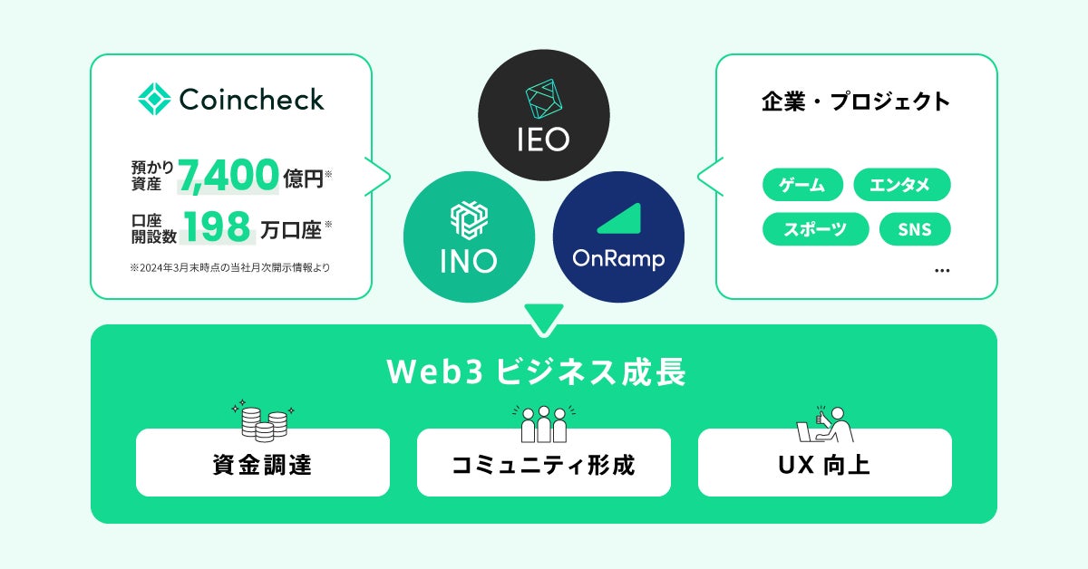 国内でNo.1(※)のIEO実績を持つ「Coincheck IEO」や、初めて販売されるNFTコレクションを取扱う「Coincheck INO」、暗号資産の購入からWeb3ウォレットへの送金プロセスをシームレスに実現する「Coincheck OnRamp」など、いずれも業界内での先駆けとなる取り組みであり、他の暗号資産取引サービスにはない大きな強みをもっています。
