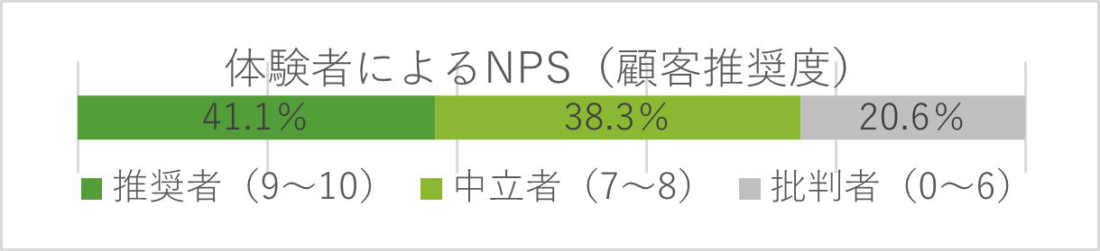 本実証実験のアンケート結果から、訪日外国人旅行者のNPSスコア21(顧客推奨度平均値7.8)となり、あわせて支払意思額や飲食エリアにおける行動意向に関する示唆が得られました。